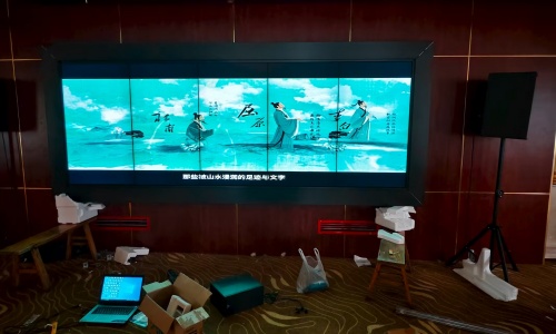 | 某黄金游轮室内55寸LCD液晶拼接屏安装调试完毕 |